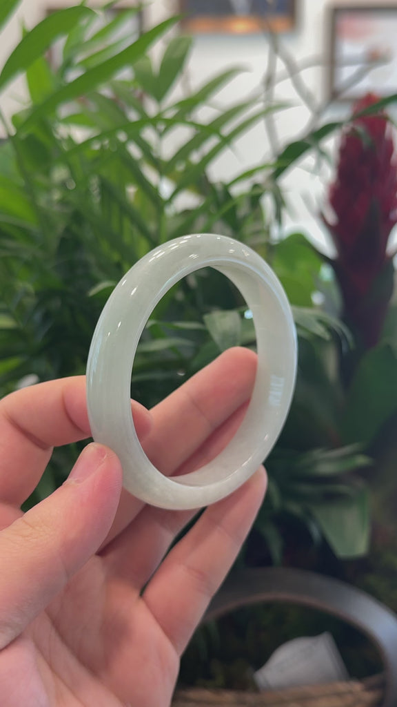* DETAILS--- This exquisite bangle is crafted from premium Burmese jadeite in a light green hue. With its smooth, translucent texture and captivating color, it radiates a timeless elegance and cultural heritage. The classic half-round comfort design enhances the jade’s natural beauty with simplicity, making this bracelet a cherished addition to any jewelry collection. just has some clouds and inclusion, Known to symbolize protection and strength, jade bangles hold deep meaning, making this piece a thoughtful, one-of-a-kind gift for yourself or someone truly special.