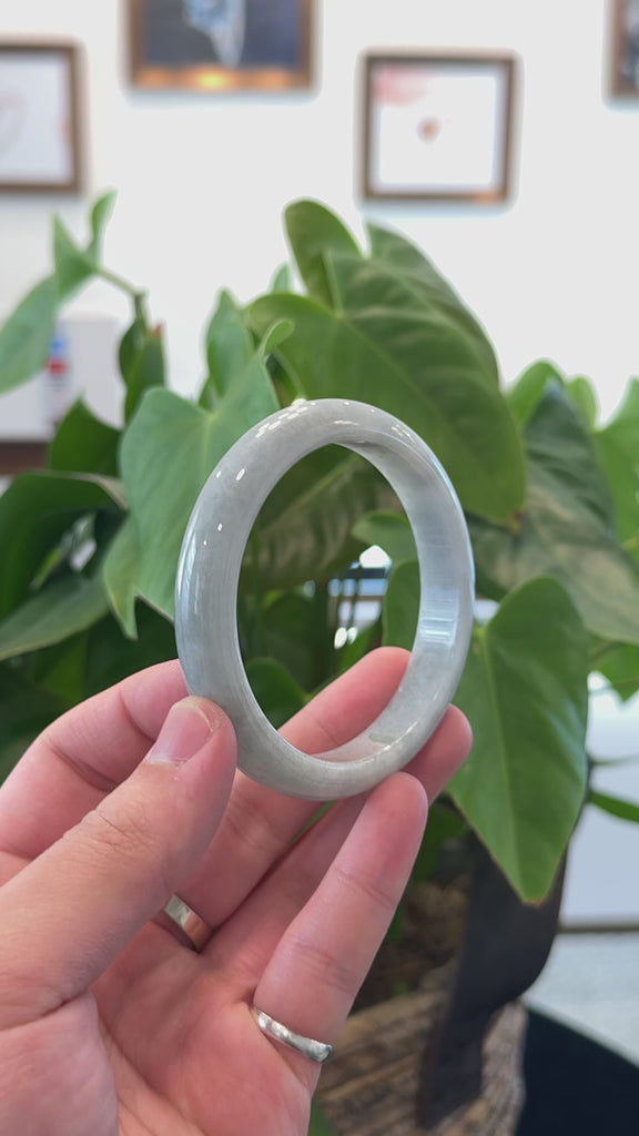 * DETAILS--- Genuine Burmese Jadeite Jade Bangle Bracelet. This bangle is made with high-quality genuine Burmese greyish-green Jadeite jade, The jade texture is fine with small natural lines. The grey-green color and fine texture is truly a mesmerizing combination. The Classic half-round style bangle looks completely beautiful with blue-green. It's a very unique bangle for yourself or your love.
