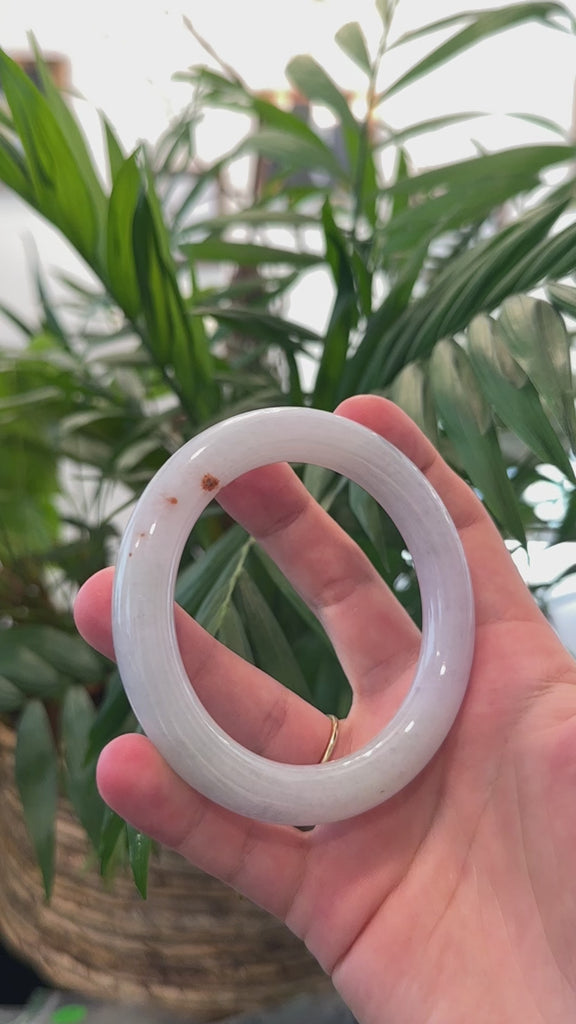 * DETAILS--- This bangle is crafted from genuine Burmese Jadeite jade. It features a smooth, semi translucent texture with specks of SaJin "Golden Dust" for a beautiful, unique look. It's a full round, traditional bangle, which is fully round throughout the bangle and this bangle features a wider width making this a more unique and bold bangle. Known for its durability, jadeite is also believed to bring good luck. This bangle makes a thoughtful and meaningful gift for yourself or someone special.