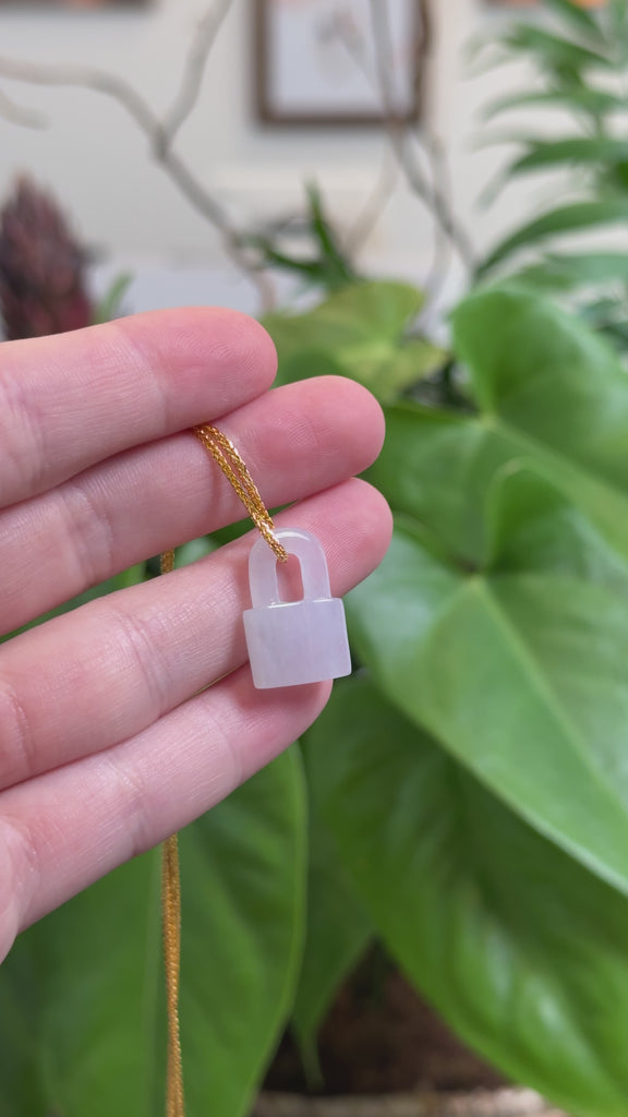 * Design Concept--- Introducing Baikalla Lavender Jadeite Jade Lock Necklace Pendant. This necklace is shaped like a lock symbolizing security and commitment. The ice texture of jadeite jade is semi smooth with unique light lavender color. Perfect for you or your loved one.