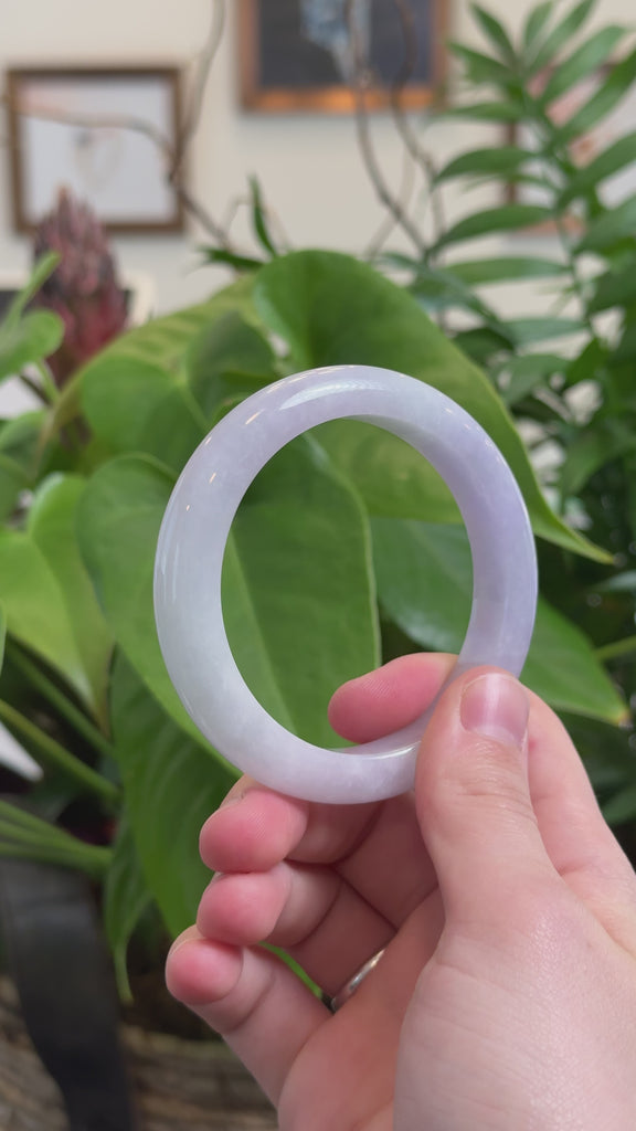 * DETAILS--This bangle is made from high-quality genuine Burmese Jadeite jade. It has a very smooth & translucent texture with a beautiful lavender color throughout. The classic half-round design offers comfort and style. Jadeite jade is one of the toughest gemstones, and it's believed to bring good luck. This bangle makes a special gift for you or a loved one.