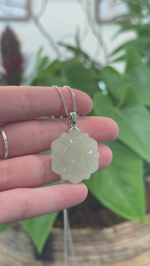 Baikalla "Lucky Lotus" White Nephrite Jade Pendant Necklace