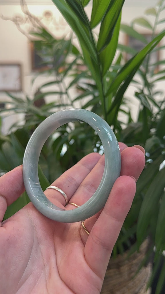* DETAILS--- This beautiful bangle is made from natural Burmese Jadeite jade, featuring a smooth texture and an overall blue color through out. It's a half round, comfort fit bangle, which gives the bangle traditional look for everyday wear. This bangle has very few visible texture, overall very smooth and no natural lines. This is a rare color to come by for Burmese jadeite jade. A timeless piece, perfect as a thoughtful gift for yourself or someone truly special.