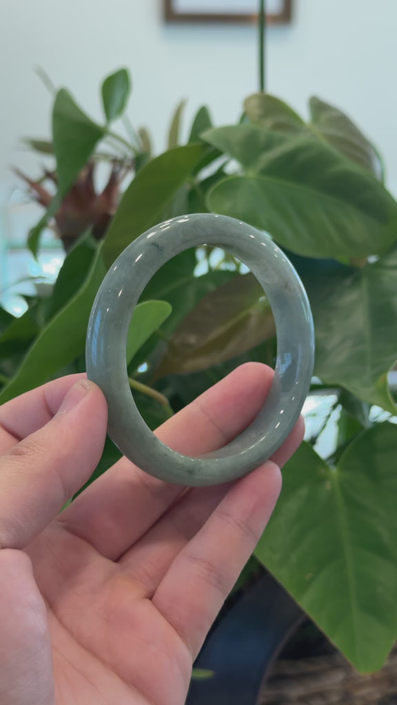 * DETAILS--- Genuine Burmese Jadeite Jade Bangle Bracelet. This bangle is made with very unique Burmese oil green Jadeite jade. The jade texture is fine and translucent. With some small cloudy spot inside. The bangle has some very beautiful deep green color. The oil green and translucent texture, truly a mesmerizing combination. The Classic half round style bracelet.