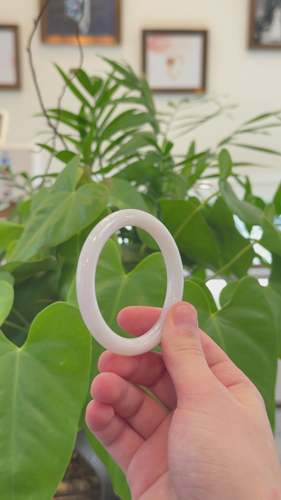 * DETAILS--- This elegant jade bangle is crafted from premium Burmese Jadeite jade, showcasing a smooth texture and a delicate light lavender blue hue. Its classic round design enhances its natural beauty, just has little natural lines. A timeless piece, it makes a meaningful gift for yourself or someone special.