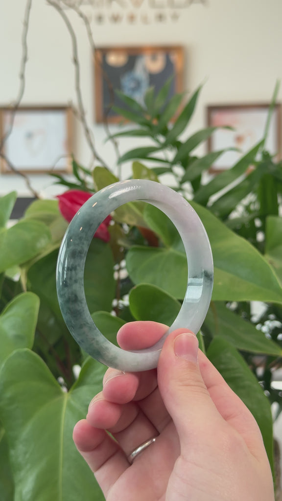 * DETAILS--This beautiful bangle is made from premium Burmese Jadeite jade, featuring a smooth texture and a lovely blue-green color. Its classic half-round design highlights its natural beauty and ensures a comfortable fit. A timeless piece, perfect as a thoughtful gift for yourself or someone truly special.