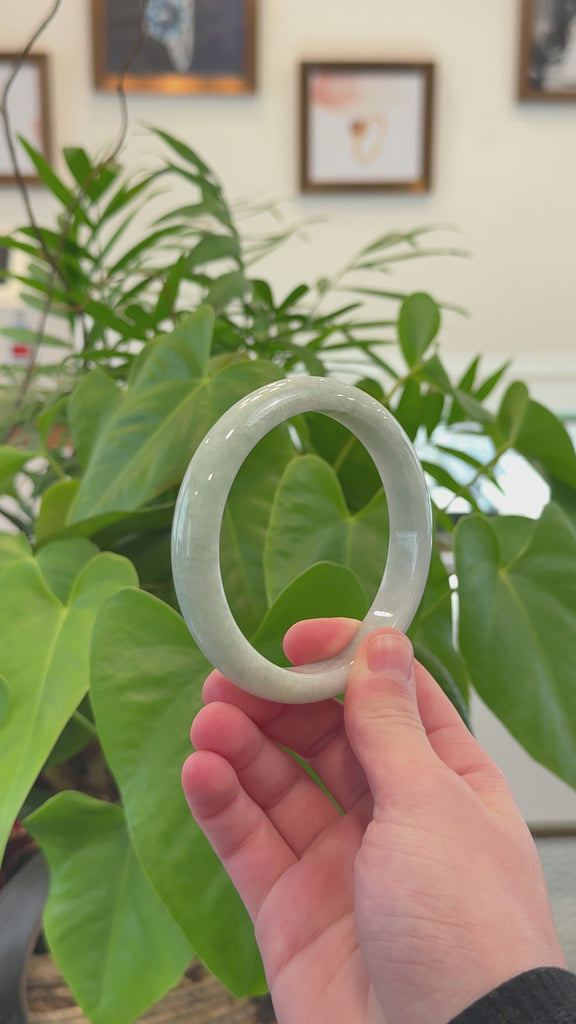 * DETAILS--- This beautiful bangle is made from premium Burmese Jadeite jade, featuring a smooth texture and a lovely light green colors. Its classic half-round design highlights its natural beauty and ensures a comfortable fit. Just has some natural clouds, it's a bigger size, very affordable. A timeless piece, perfect as a thoughtful gift for yourself or someone truly special.