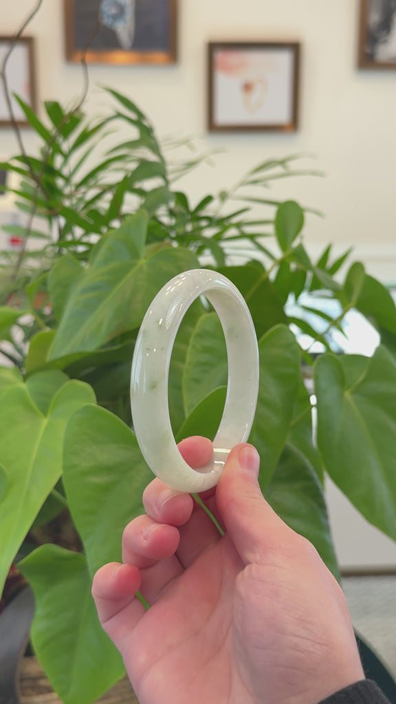 * DETAILS--- This beautiful bangle is made from premium Burmese Jadeite jade, featuring a smooth texture and a lovely light green colors. Its classic half-round design highlights its natural beauty and ensures a comfortable fit. Just has some natural clouds, it's a bigger size, very affordable. A timeless piece, perfect as a thoughtful gift for yourself or someone truly special.