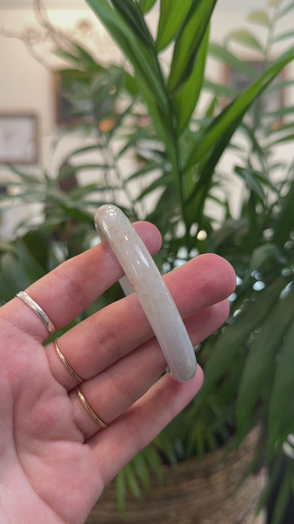 * DETAILS--- This beautiful bangle is made from natural Burmese Jadeite jade, featuring a smooth texture and overall faint lavender base color with light yellowish, Sajin/ Golden Dust Color. It's a traditional full round bangle, which means it's fully round, tube shape. This bangle has a very smooth texture, with no cloudy parts or natural lines. A timeless piece, perfect as a thoughtful gift for yourself or someone truly special.
