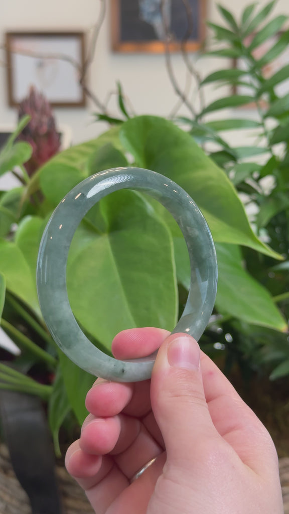 * DETAILS--- This beautiful bangle is made from premium Burmese Jadeite jade, featuring a smooth texture and a oil-green color. Its classic half-round design highlights its natural beauty and ensures a comfortable fit, It's a bigger size. A timeless piece, perfect as a thoughtful gift for yourself or someone truly special.