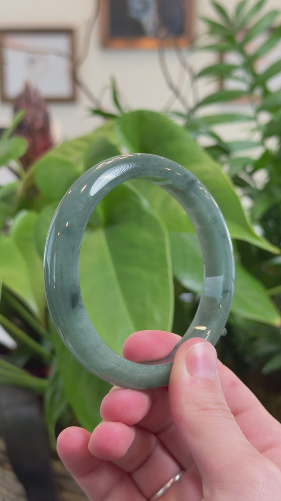 * DETAILS--- This beautiful bangle is made from premium Burmese Jadeite jade, featuring a smooth texture and a oil-green color. Its classic half-round design highlights its natural beauty and ensures a comfortable fit, It's a bigger size. A timeless piece, perfect as a thoughtful gift for yourself or someone truly special.