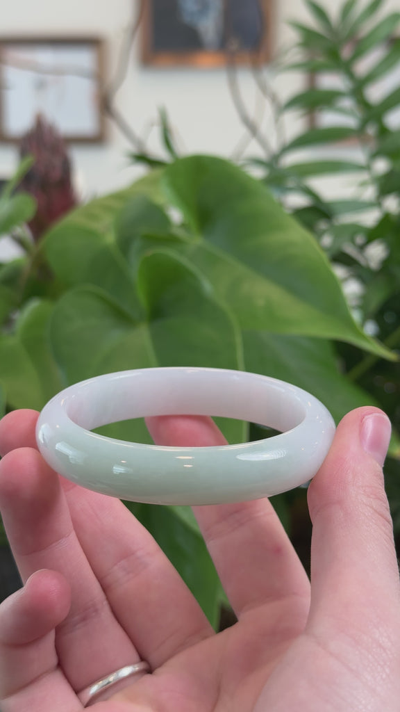 * DETAILS--- This beautiful bangle is made from premium Burmese Jadeite jade, featuring a light green color and a very smooth texture. so nice and unique. Its classic oval half-round design enhances its natural beauty and offers a comfortable style for smaller wrists. A timeless piece, perfect as a thoughtful gift for yourself or someone special.