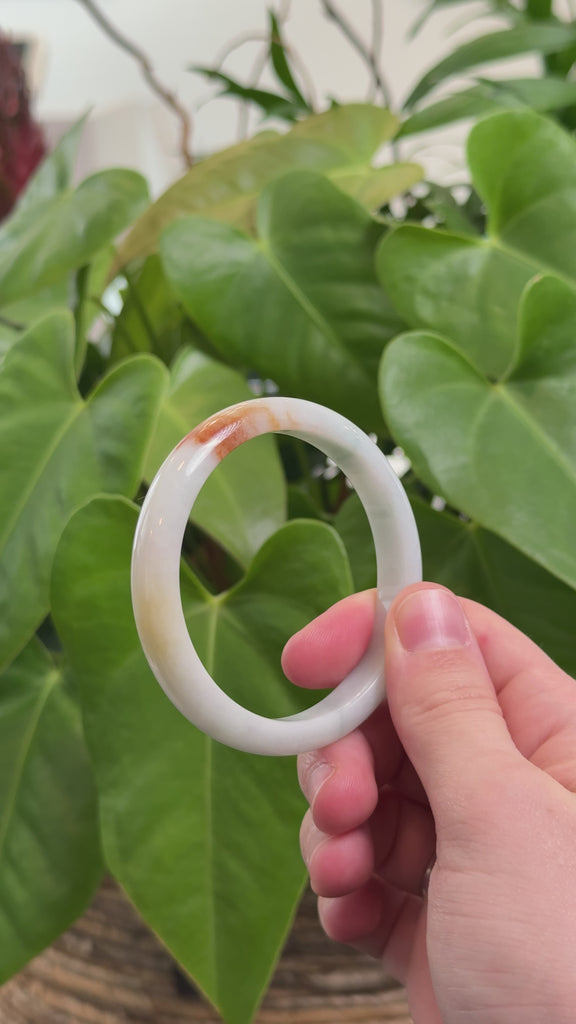 * DETAILS---This stunning jade bangle is crafted from fine Burmese jadeite with a beautiful yellow and blue green hue. Its smooth texture and timeless elegance make it a true standout. The classic half-round shape ensures a comfortable fit while showcasing the natural beauty of the jade. With its unique look, the natural jade bangle is not just a piece of fine jewelry, but also a meaningful gift — perfect for yourself or someone special.