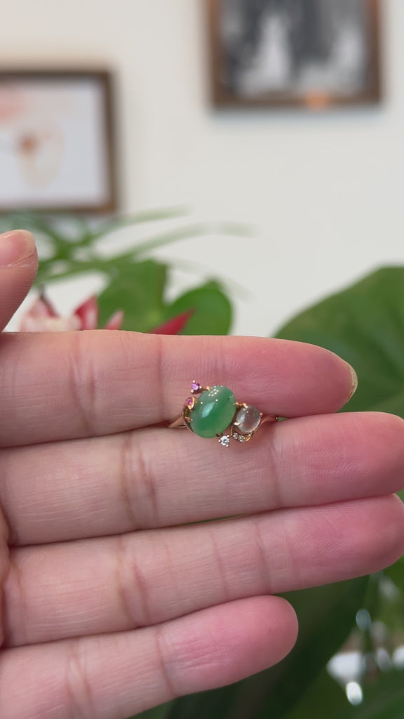 Baikalla™ 18k Rose Gold Natural Imperial Jadeite Morning Glory Engagement Ring