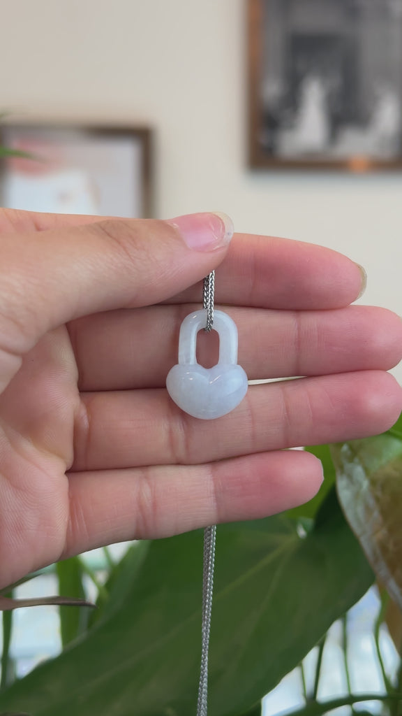 Baikalla Lavender Jadeite Jade Heart Lock Necklace Pendant