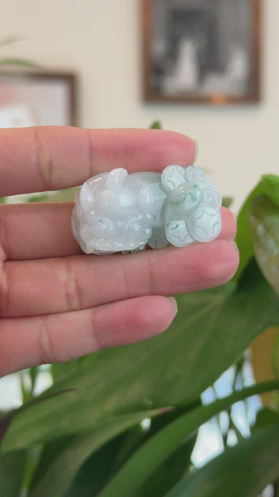 Genuine Burmese White Blue-Green Jadeite Jade PiXiu Pendant Necklace