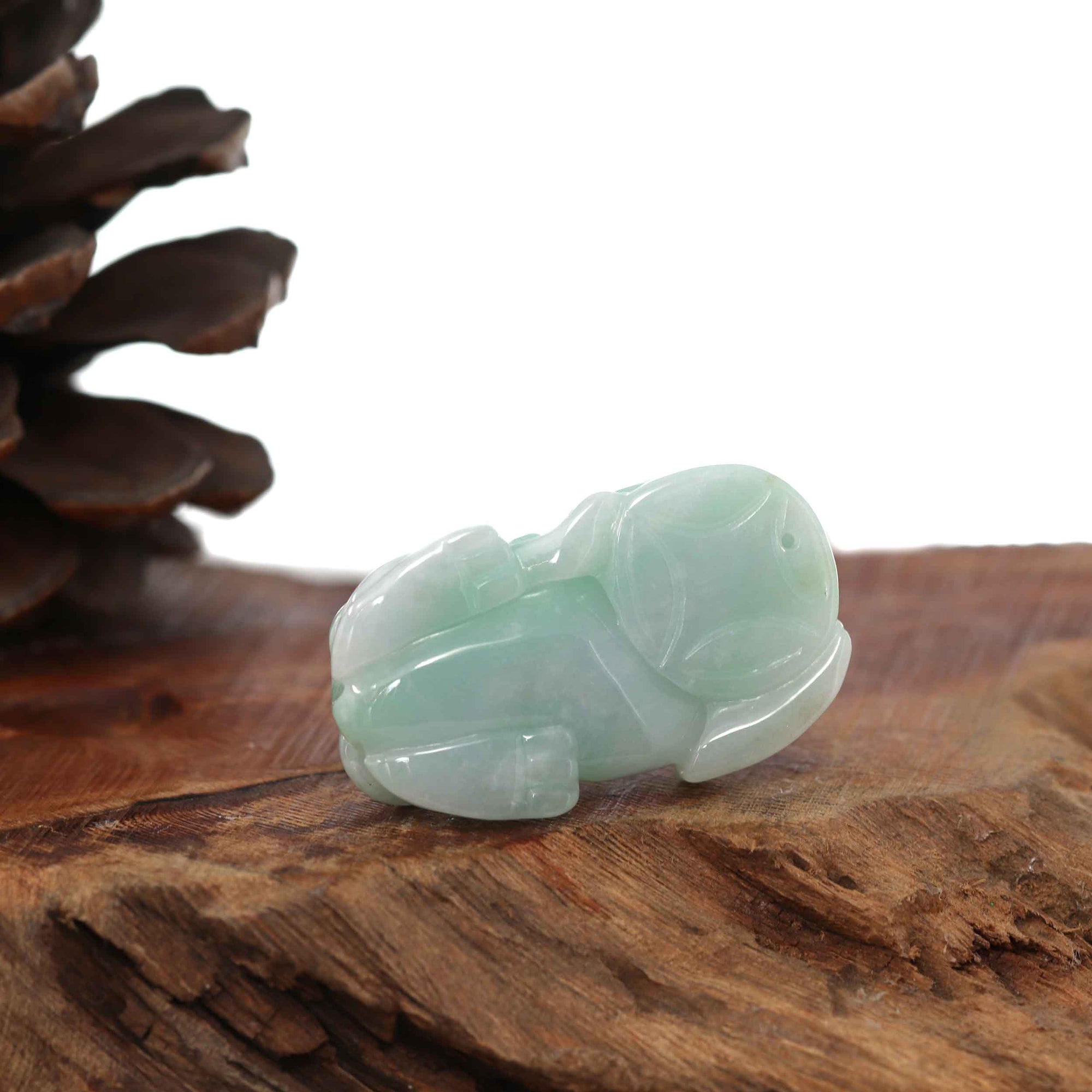 * DESIGN CONCEPT--- Genuine Jadeite Jade PiXiu Pendant Necklace. This pendant is made with very high-quality genuine apple green jadeite, The jadeite texture is so smooth and transparent. It's very perfect with little clouds. The handcraft is spiritual, And the main PiXiu looks very exquisite with patches of apple green color. About PiXiu. they say PiXiu is a lucky animal, it's the dragon's ninth son, it's good for money. So lots of people believe that it is "Zhao Cai Pi Xiu"(招财貔貅). This PiXiu is carving so nice, every detail and angle is perfect. The whole piece is completely beautiful with perfect texture jadeite.