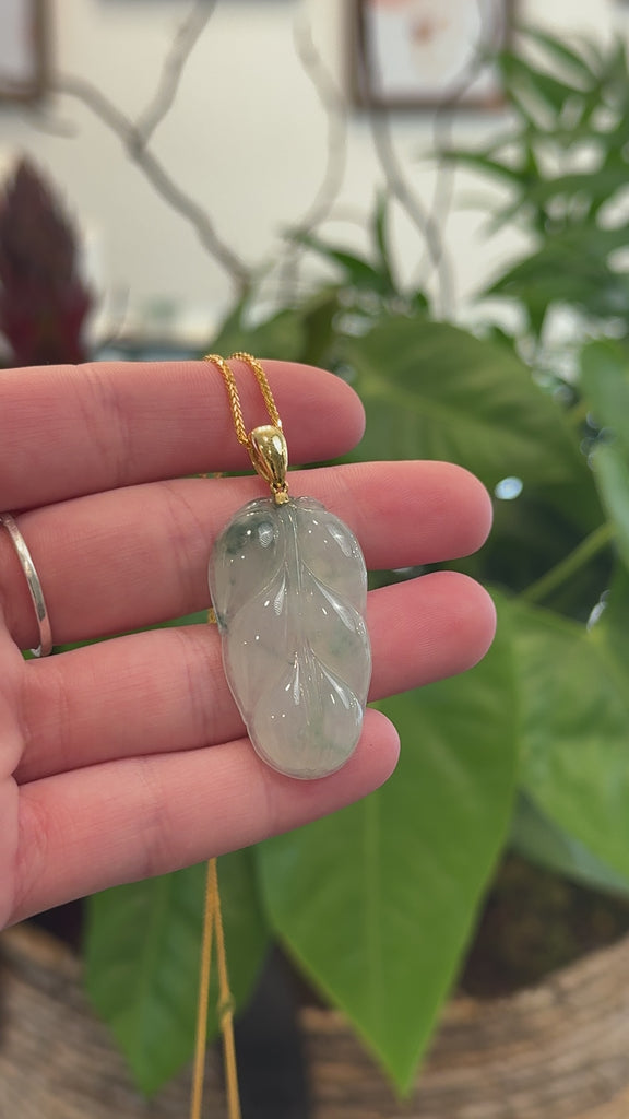 Genuine Ice Green Jadeite Jade Jin Zhi Yu Ye (Leaf) Necklace