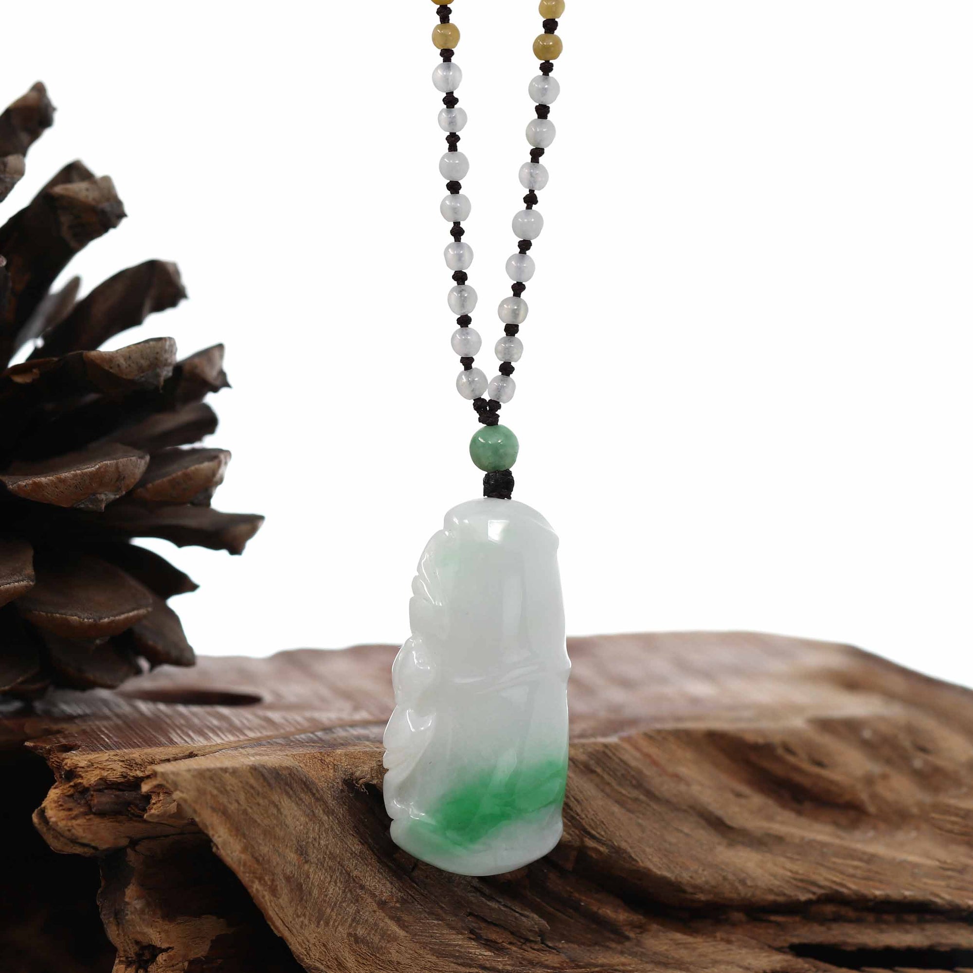 Baikalla Jewelry Jade Pendant Necklace Genuine Green Jadeite Jade Good Luck Bamboo Pendant Necklace With Real Jadeite Bead Necklace