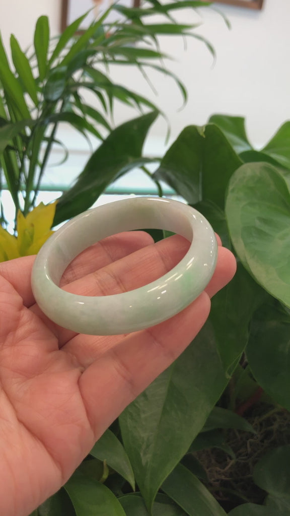 * DETAILS--- This bangle is made genuine Burmese white Jadeite jade, the jade texture is fine and smooth. The green color and transparency white texture, truly a mesmerizing combination. Just has a little natural line. It's a very unique gift for yourself or your love. It's a collectible item.
