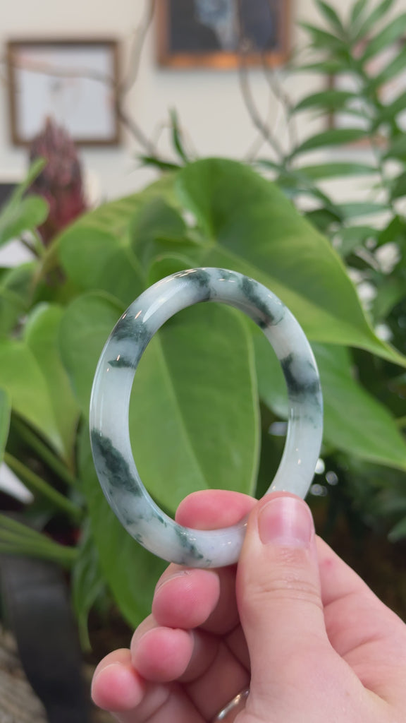 * DETAILS--- This bangle is crafted from genuine Burmese Jadeite jade. It features a smooth, translucent texture with a blue green color that looks absolutely beautiful. Its classic, traditional round design is perfect for those who appreciate timeless style. Known for its durability, jadeite is also believed to bring good luck. This bangle makes a thoughtful and meaningful gift for yourself or someone special.