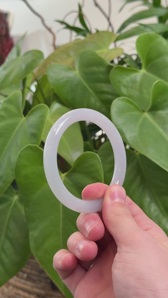* DETAILS---This stunning jade bangle is crafted from fine Burmese jadeite in a soft lavender hue. Its smooth texture and timeless elegance make it truly eye-catching. The traditional round shape is a favorite for many, offering a classic and graceful look. With its petite design and gentle color, this bangle is more than just fine jewelry — it’s a meaningful gift, perfect for yourself or someone special.