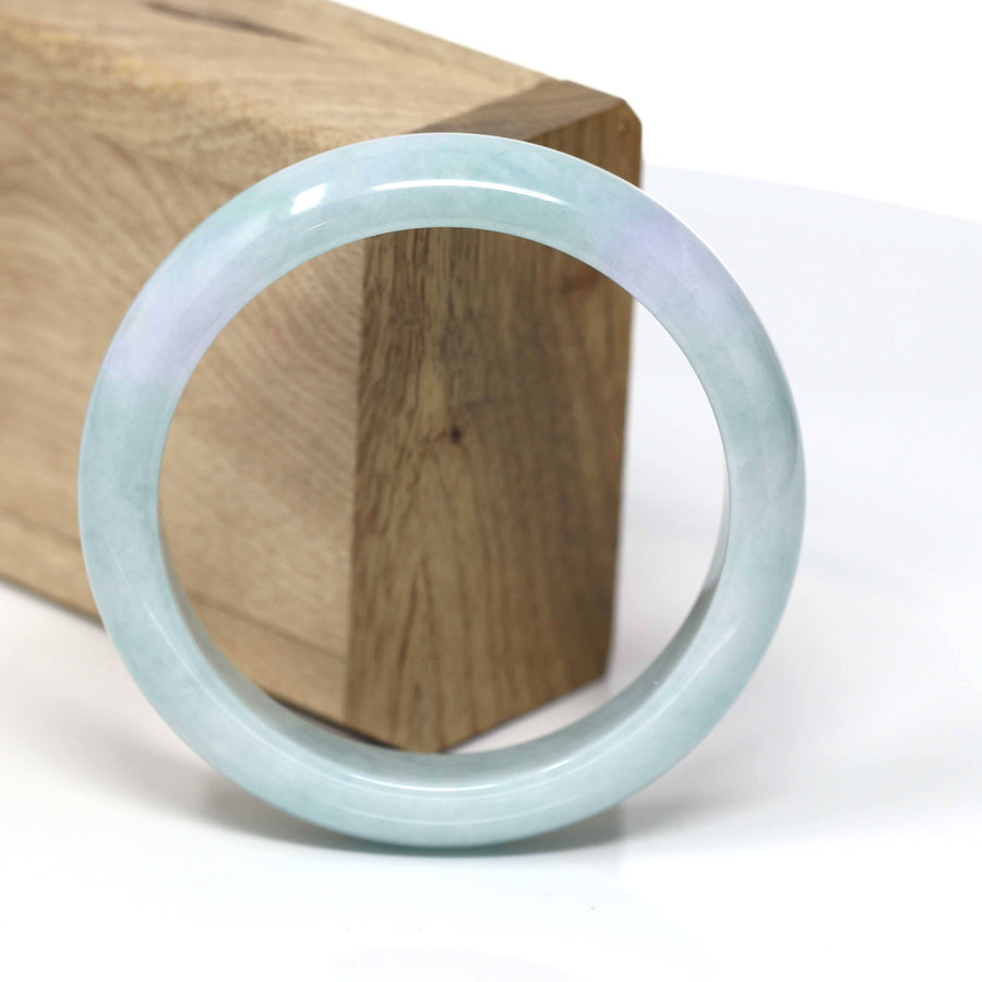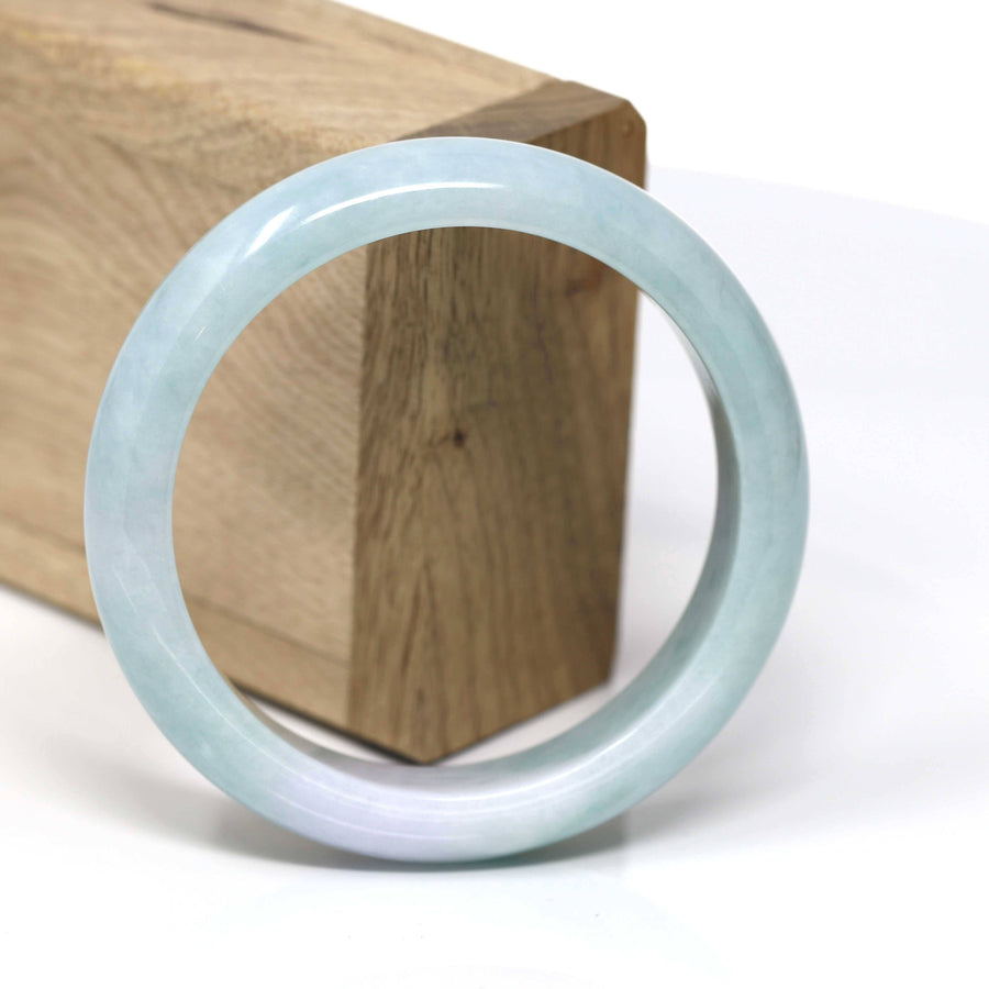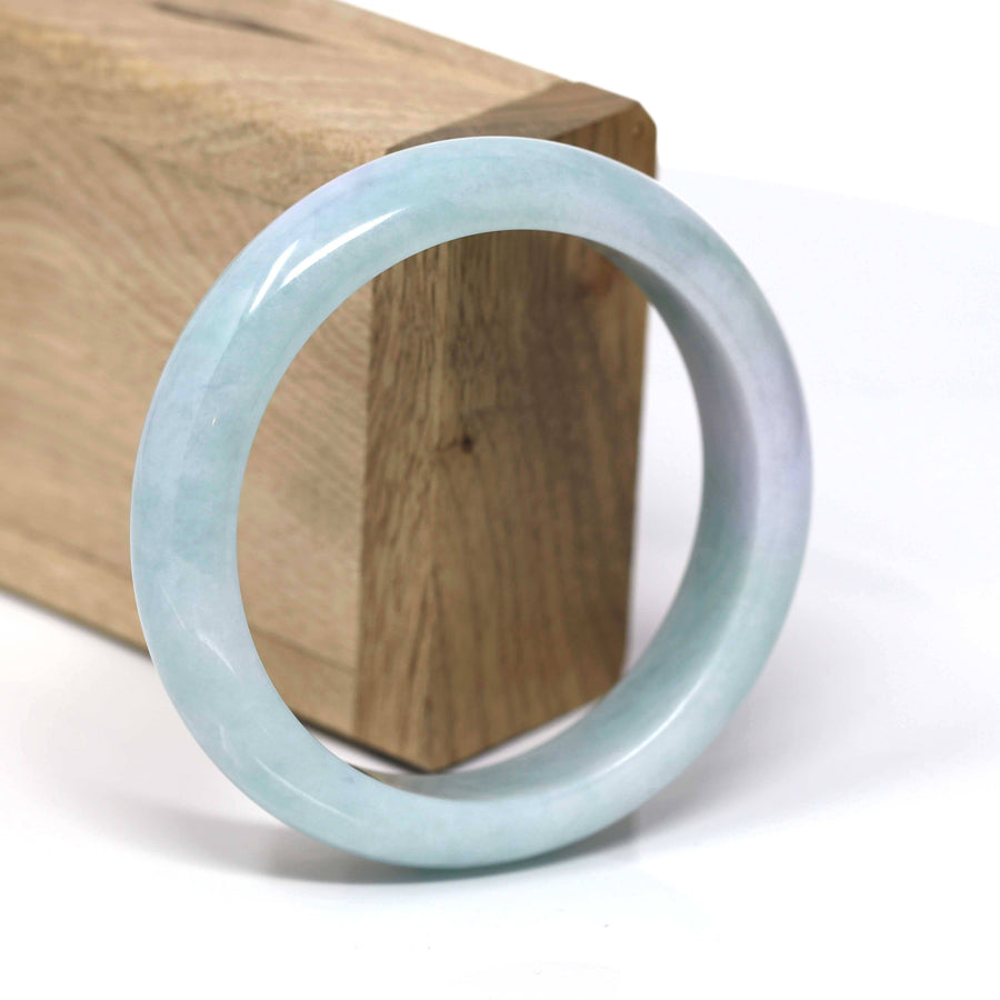 * DETAILS--- Genuine Burmese Jadeite Jade Bangle Bracelet. This bangle is made with high-quality genuine Burmese Jadeite jade, The jade texture is so smooth with a blue-green color called. The bluish-green color and translucent white texture, truly a mesmerizing combination. This whole bangle is really perfect one without flaws. It's a very unique gift for yourself or your love.