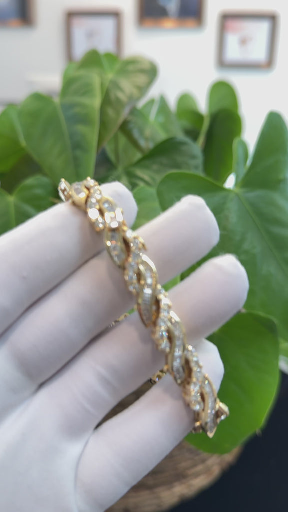 18k Yellow Gold Channel set baguette & round 12.28CTTW Diamond Bangle Bracelet