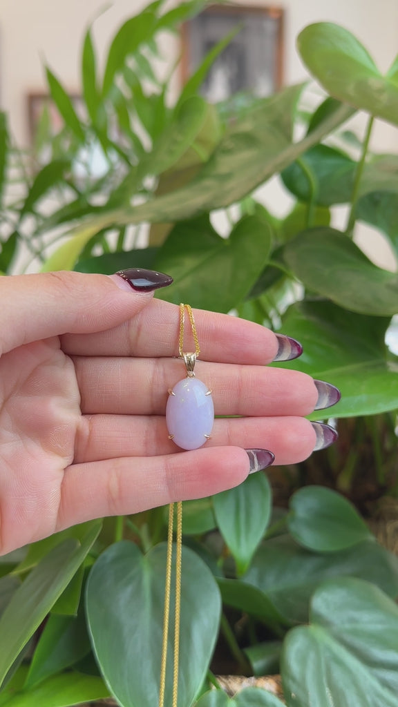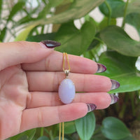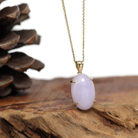 14K Gold Natural Lavender Burmese Jadeite Cabochon Necklace