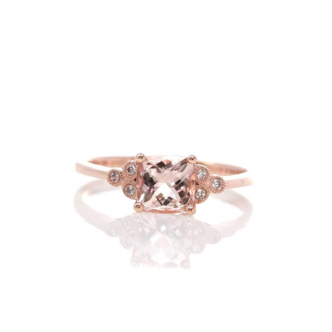 14k Rose Gold Natural Champagne Morganite Ring with Diamonds