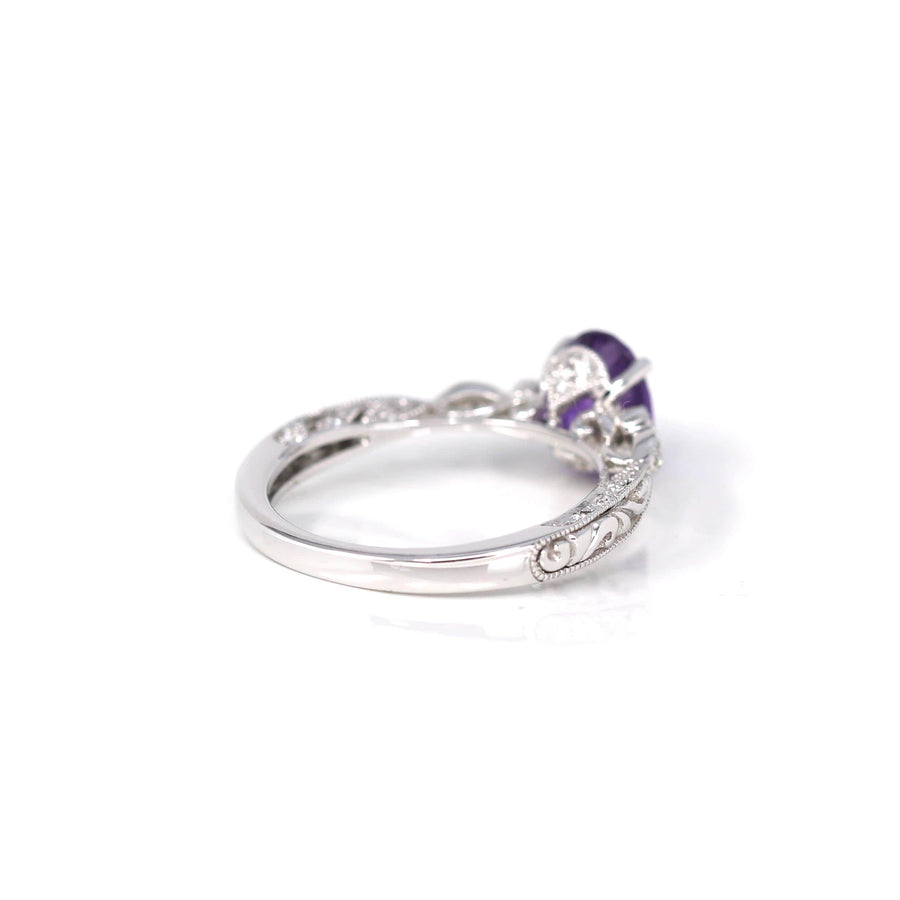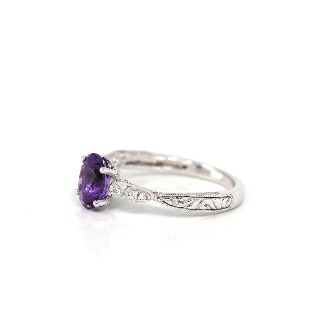 * Design Concept--- This ring features a Cushion Cut Brazillian Amethyst genuine deep purple amethyst. The design is simplistic yet elegant. The ring looks very exquisite with some diamonds tracing the accents. Baikalla artisans are dedicated to combining beautiful gemstones with modern-day luxury. The essence of this beautifully faceted amethyst is unleashed by the simplistic setting design that keeps the originality of the rare gem.