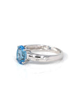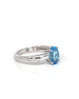 14k White Gold Genuine Swiss Blue Topaz Ring with Diamonds