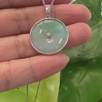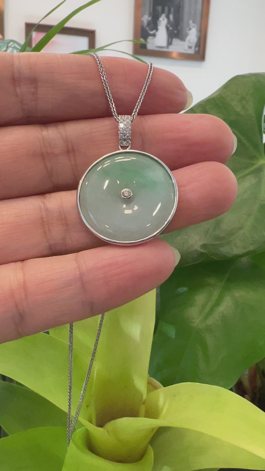 14K White Gold "Good Luck Button" Necklace Ice Green Jadeite Jade Lucky KouKou Pendant Necklace