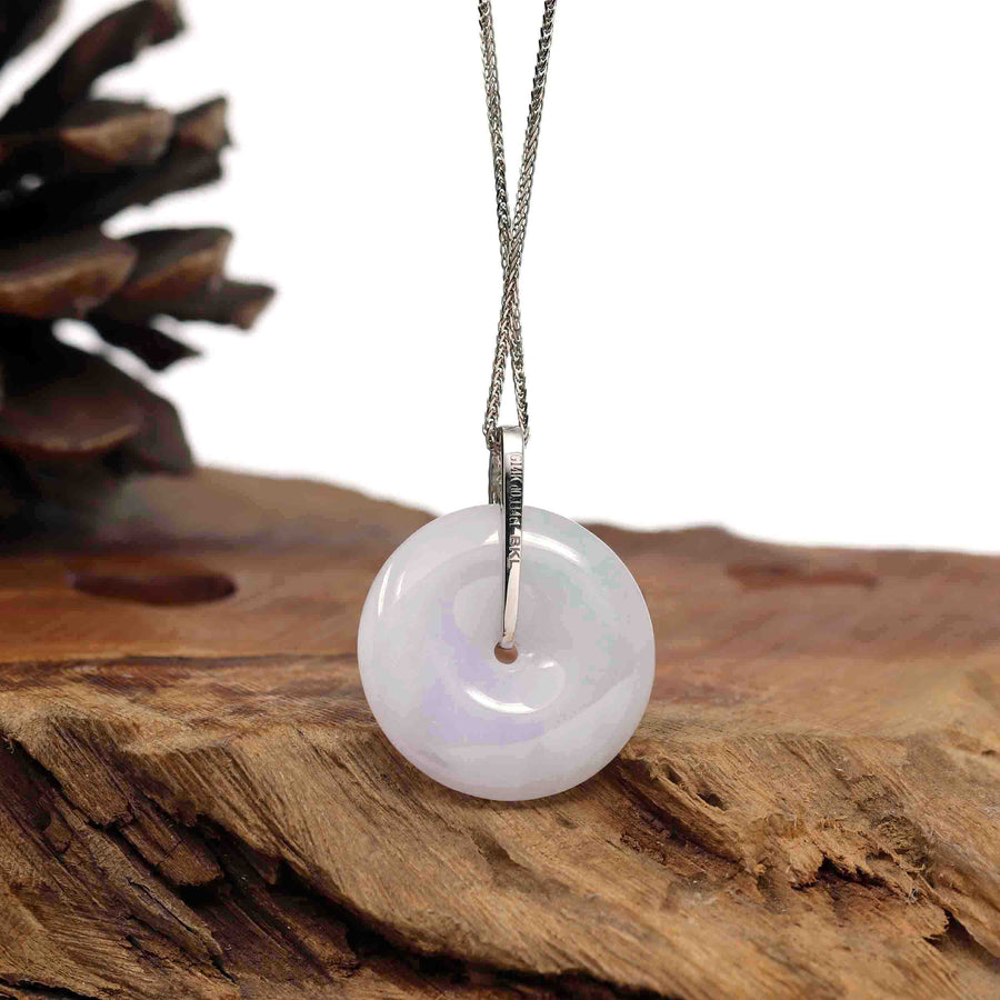 Baikalla Jewelry Gold Jadeite Jade Pendant Necklace 14K White Gold "Good Luck Button" Necklace Ice Lavender Jadeite Jade Pendant Necklace