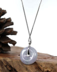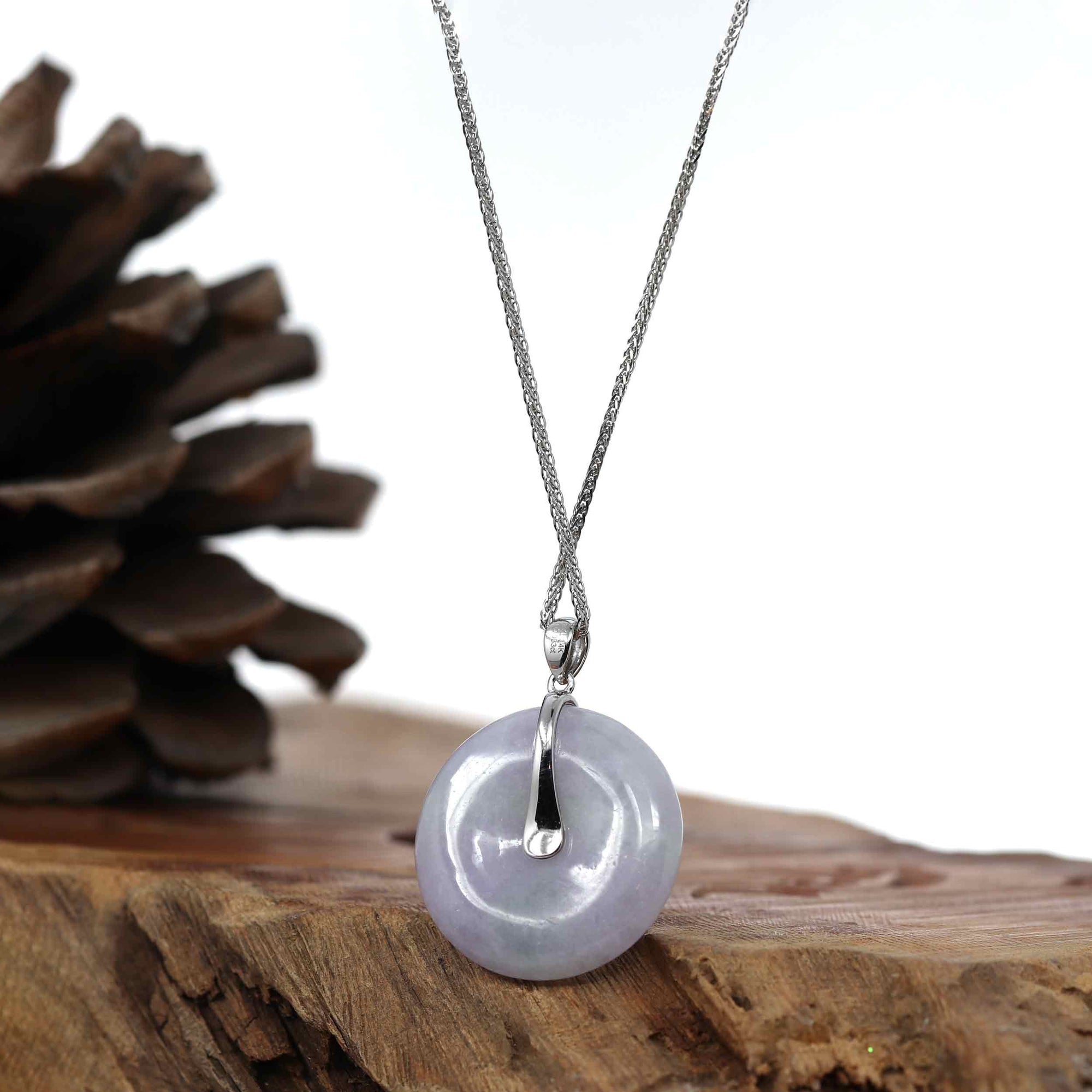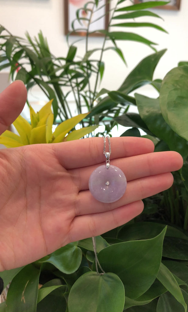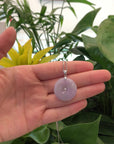 Genuine Lavender Jadeite Jade Lucky KouKou " Ping An Kou " Pendant With 14K White Gold Bail & Diamond In Center.
