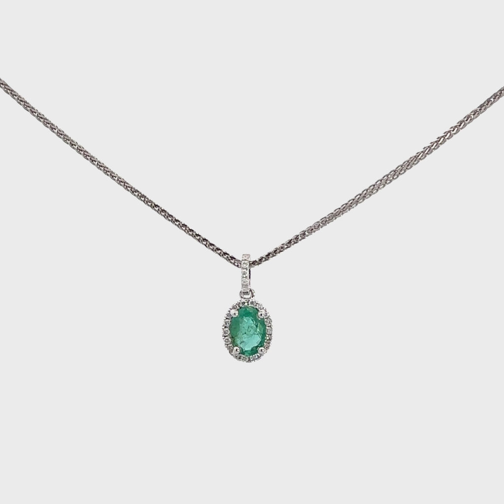 * Design Concept--- Introducing the 14k White Gold Natural Emerald Pendant Necklace by Baikalla, a breathtaking display of elegance and lush allure of natural emeralds. This pendants centerpiece is a dazzling all natural emerald that's accented with shinning diamonds along the setting. 14k white gold elevates the luxurious feeling by incasing the gemstones in an exquisite halo design. Elevate your style with the enchanting Baikalla emerald pendant necklace.