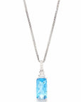 14k White Gold Natural Swiss Blue Topaz Necklace With Diamonds