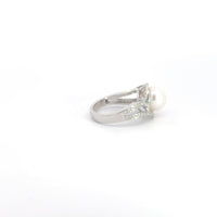 Baikalla Jewelry Gold Pearl Ring 5 14k White Gold Peal Engagement Ring with Diamonds