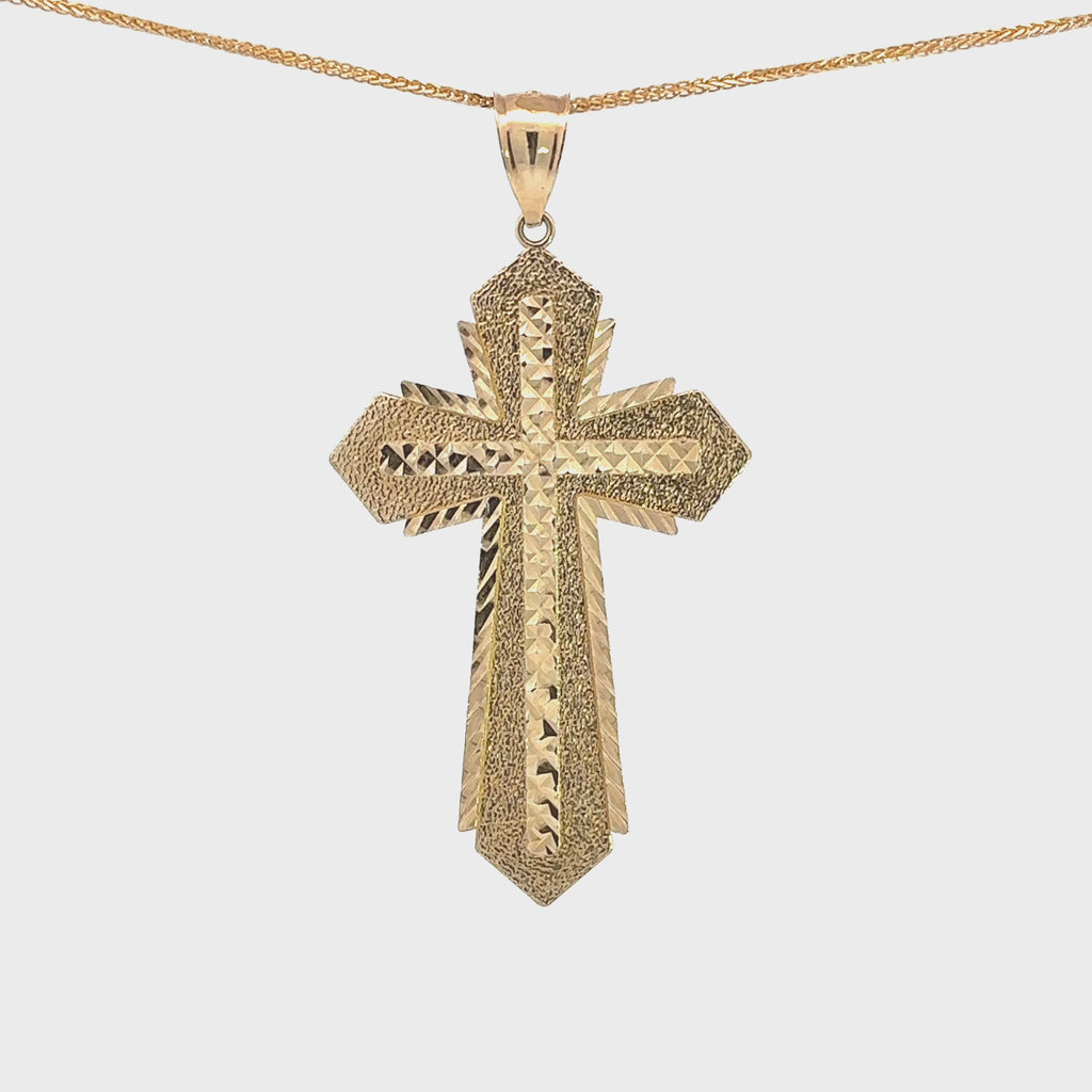 * INTRODUCTION--- Introducing our 14k Yellow Gold Diamond Cut Cross Pendant Necklace – a timeless symbol of faith and grace. Made with 14k gold, this cross pendant necklace is accented with diamond cut texture for a timeless finish.