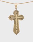 14k Yellow Gold Diamond Cut Cross Pendant Necklace