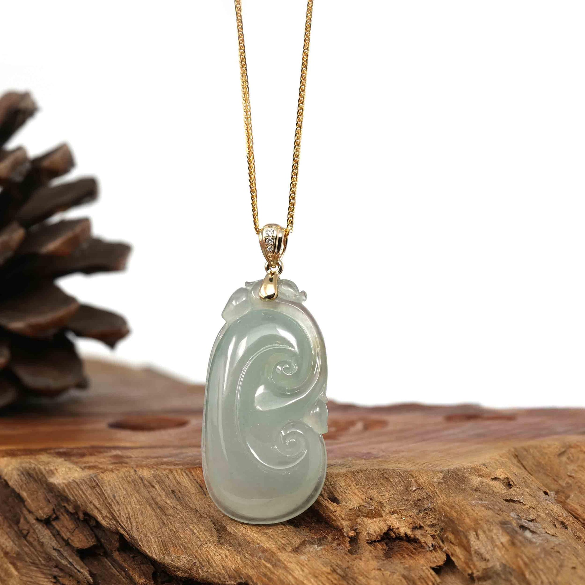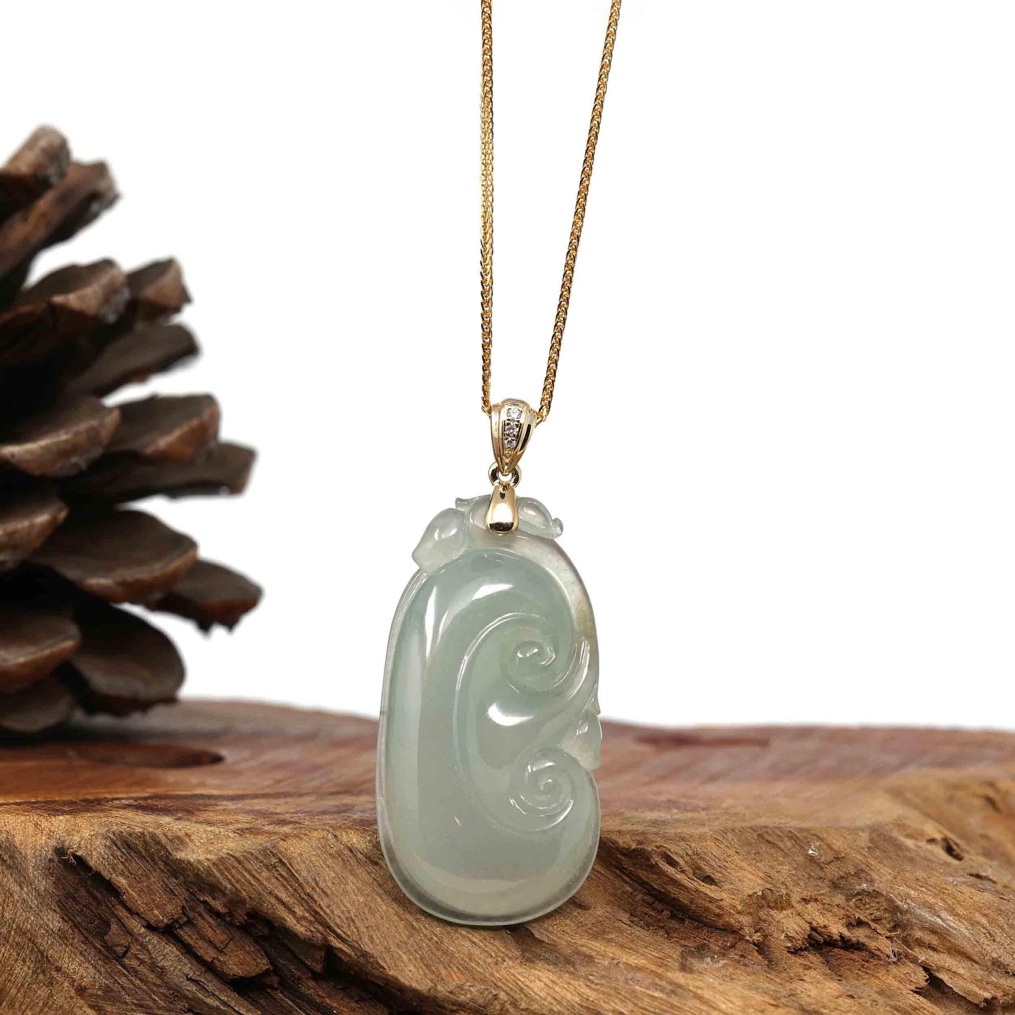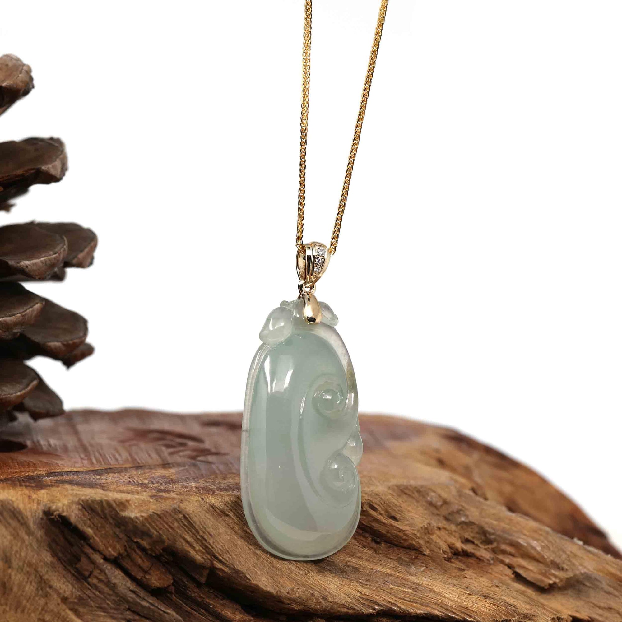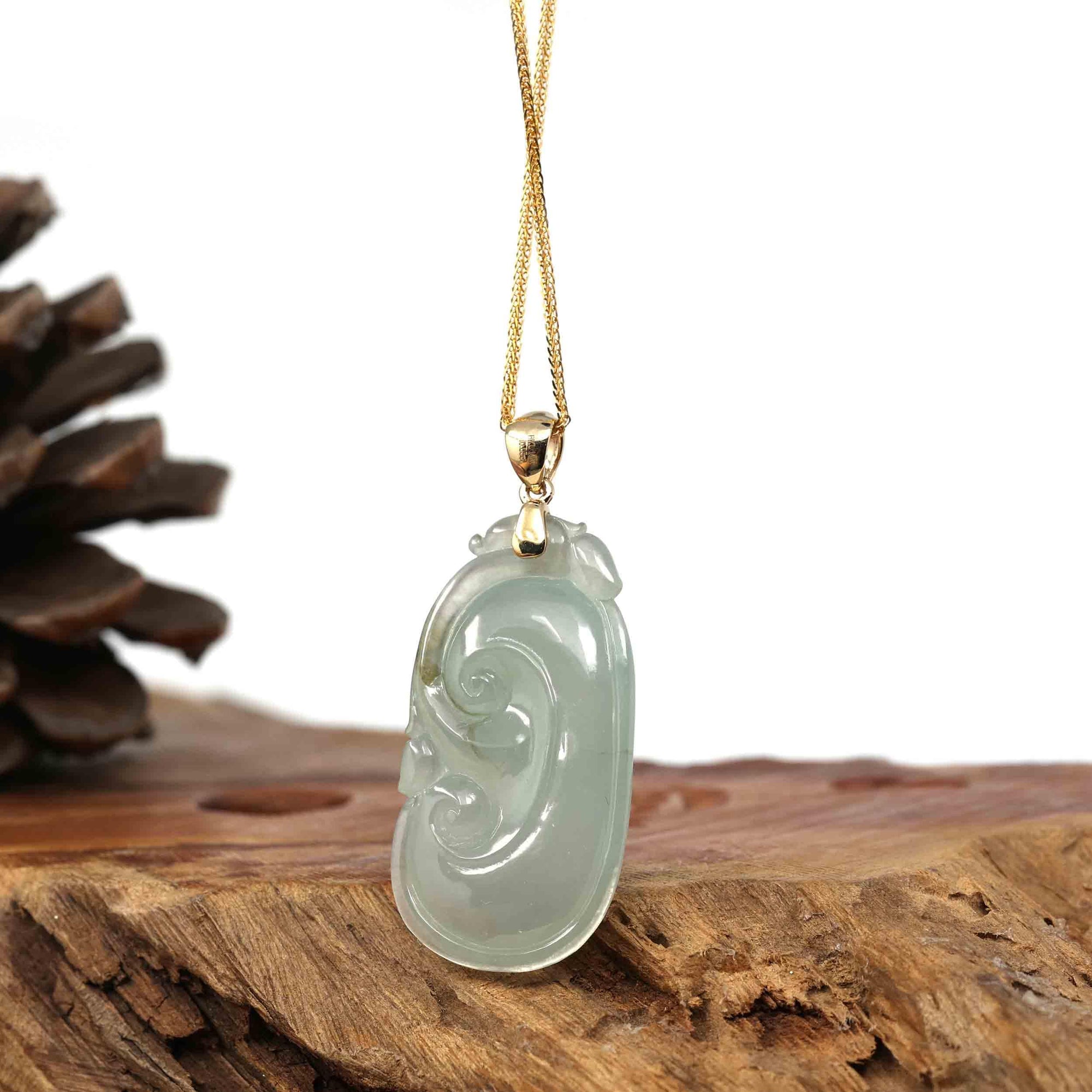Baikalla "RuYi" (As You Wish) Icy Genuine Burmese Jadeite Pendant W/ 14k Yellow Gold Bail
