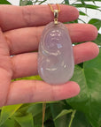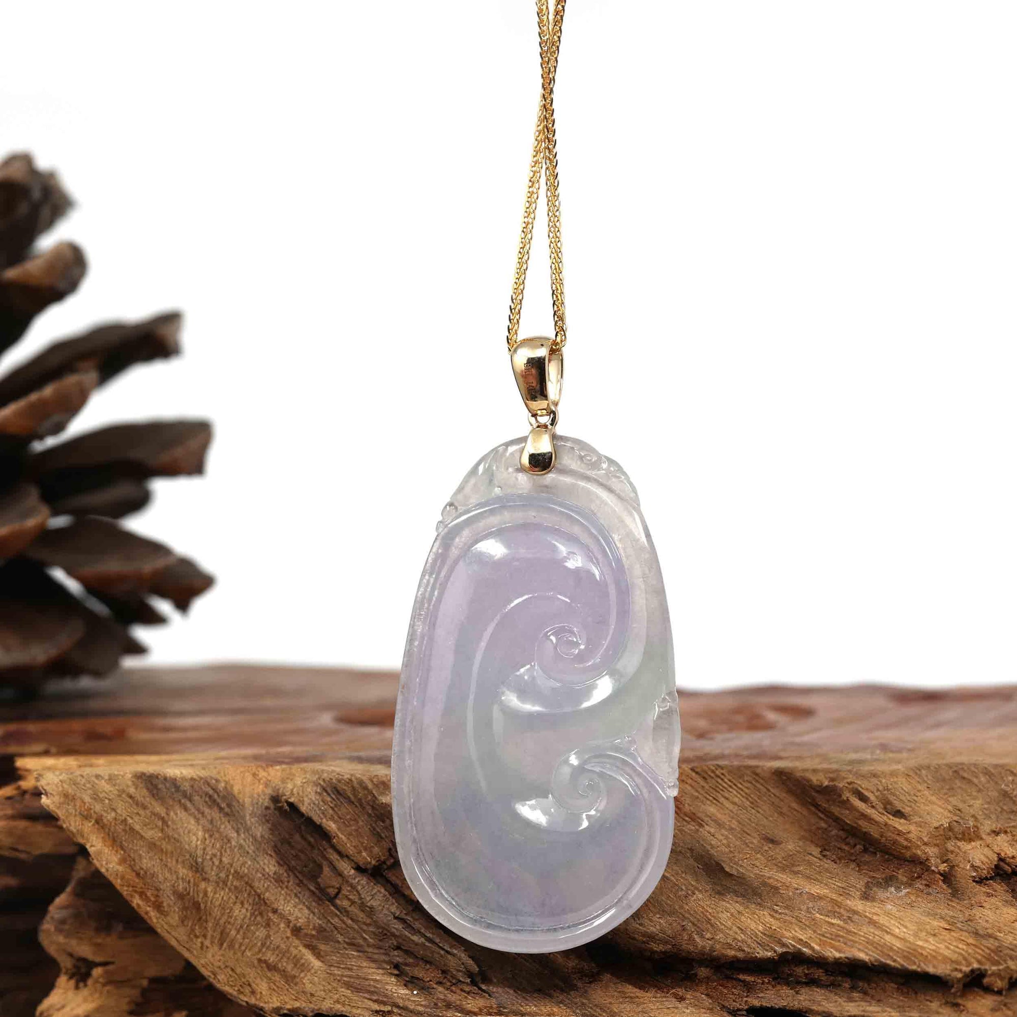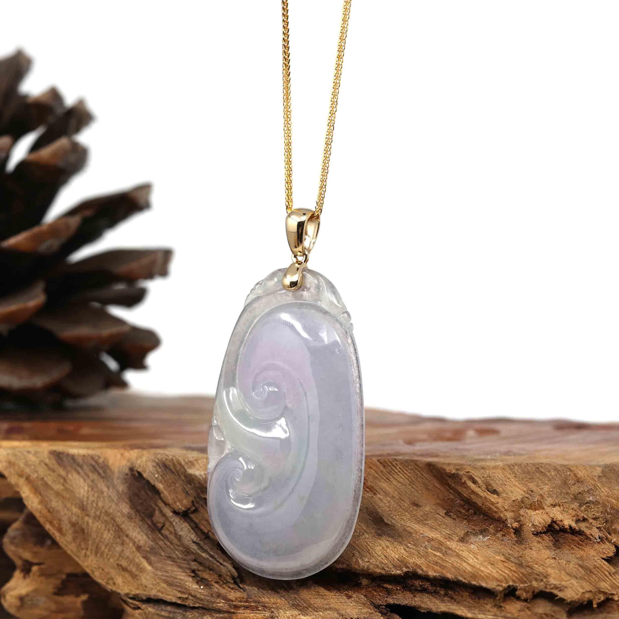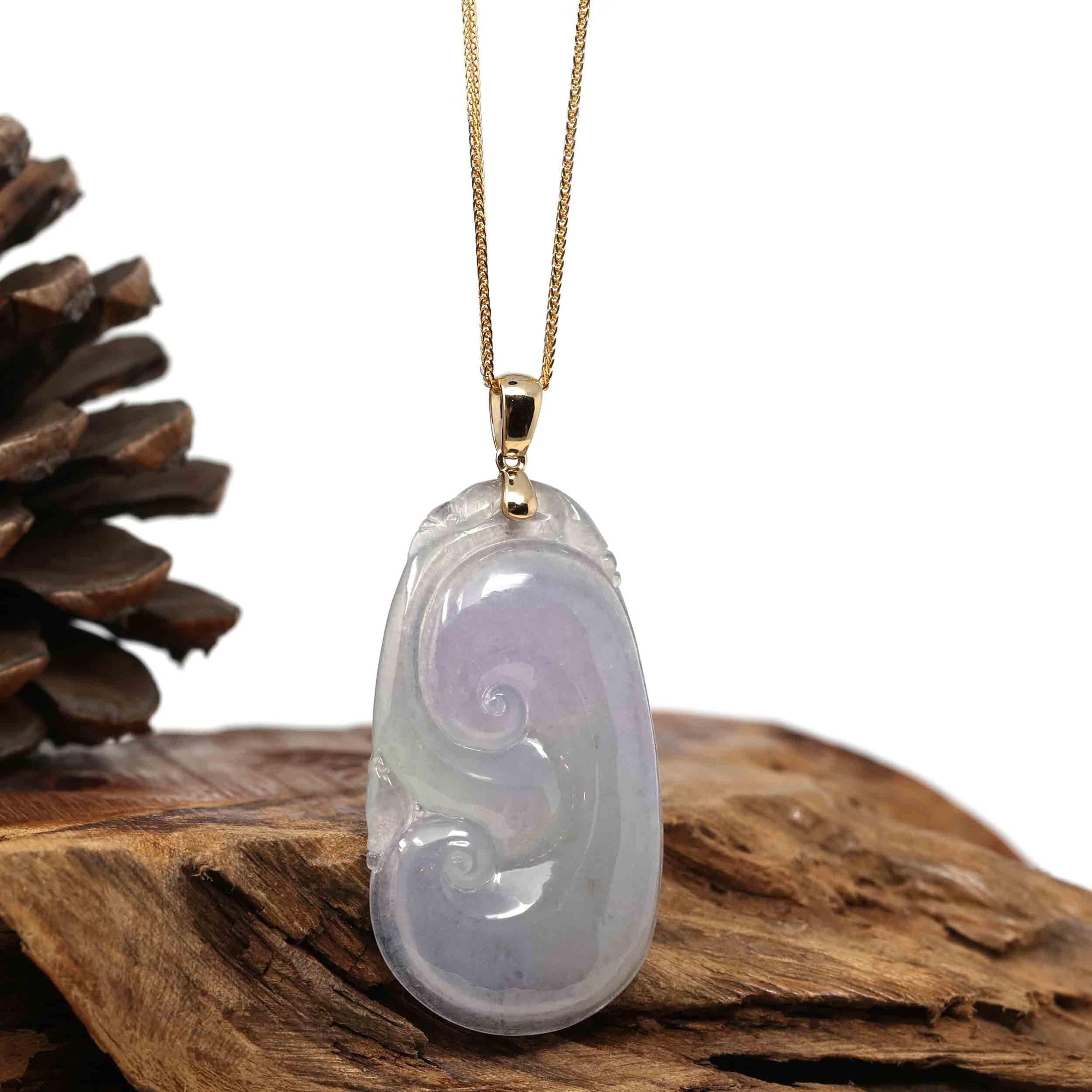 14k Yellow Gold Genuine Burmese Ice Lavender Jadeite Ruyi Pendant Necklace