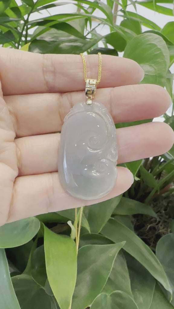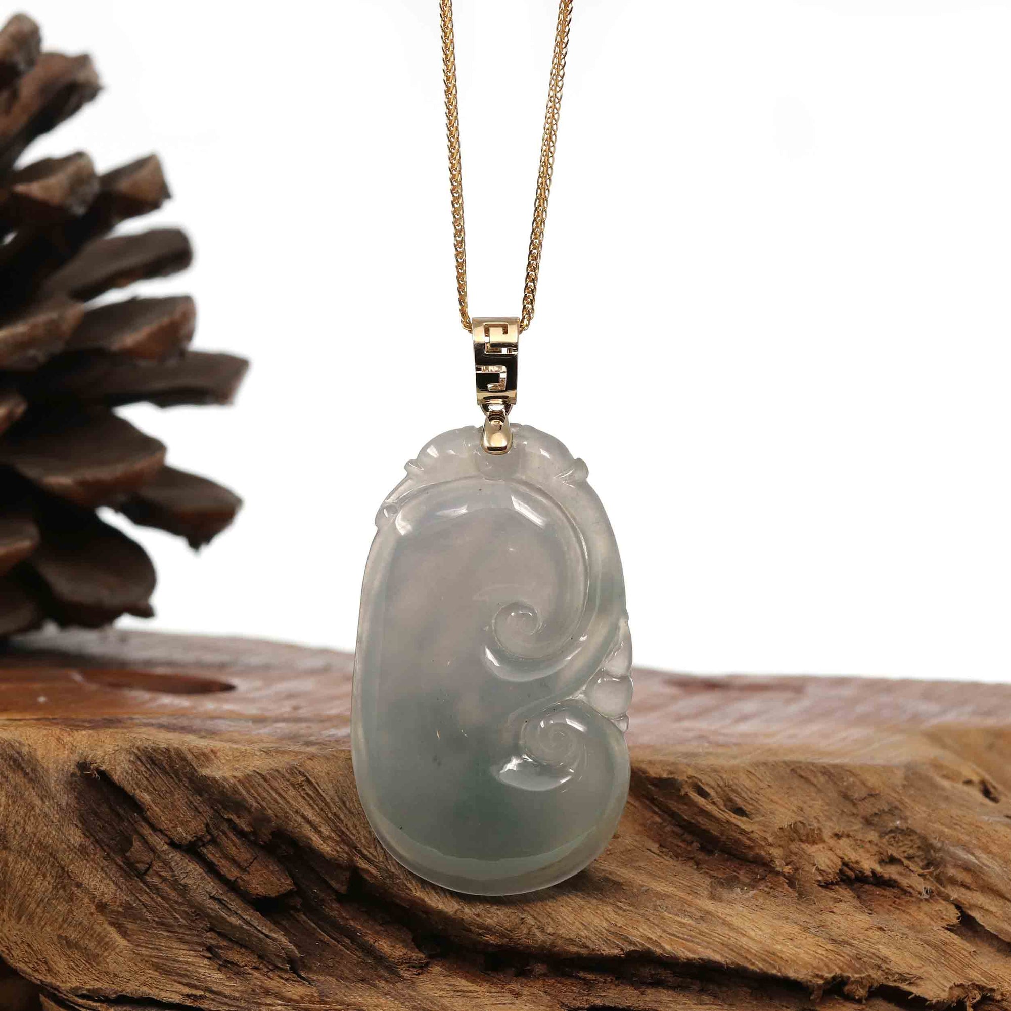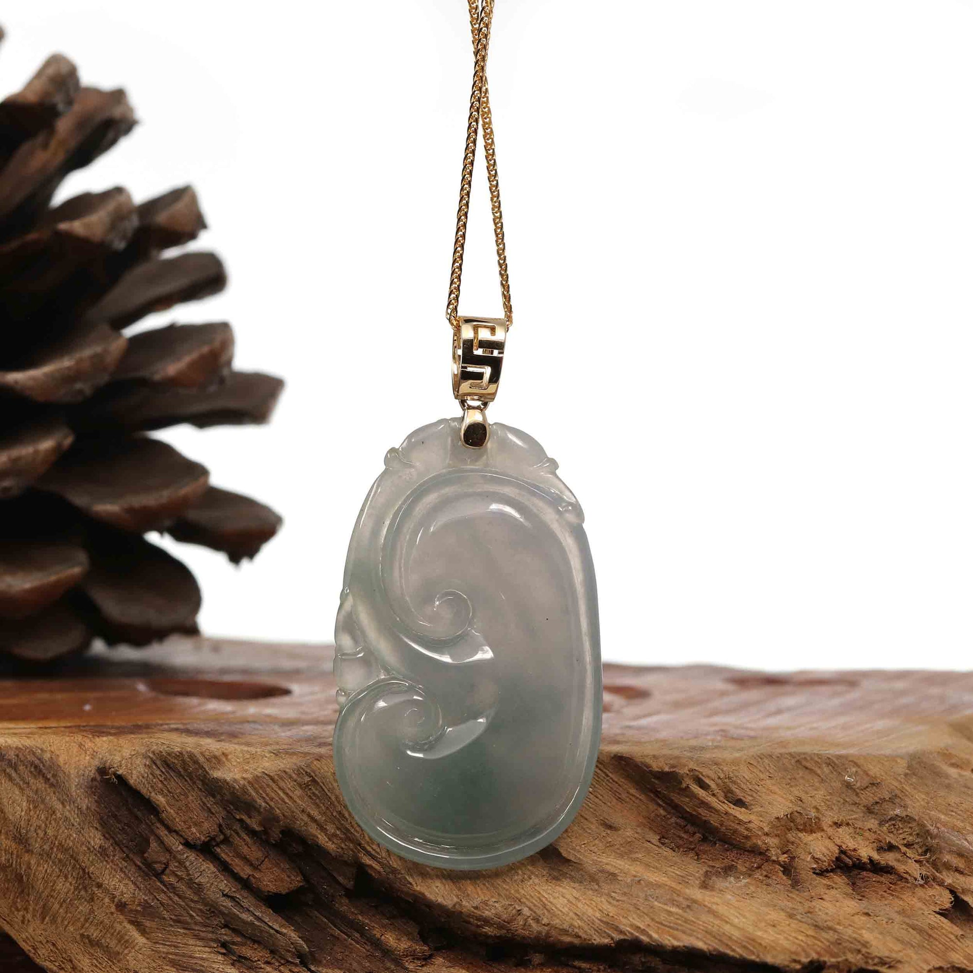 Baikalla Icy Green "RuYi" (As You Wish) Genuine Burmese Jadeite Jade Pendant W/ 14K Yellow Gold Bail