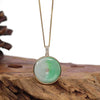 14K Yellow Gold "Good Luck Button" Necklace Ice Green Jadeite Jade Pendant Necklace
