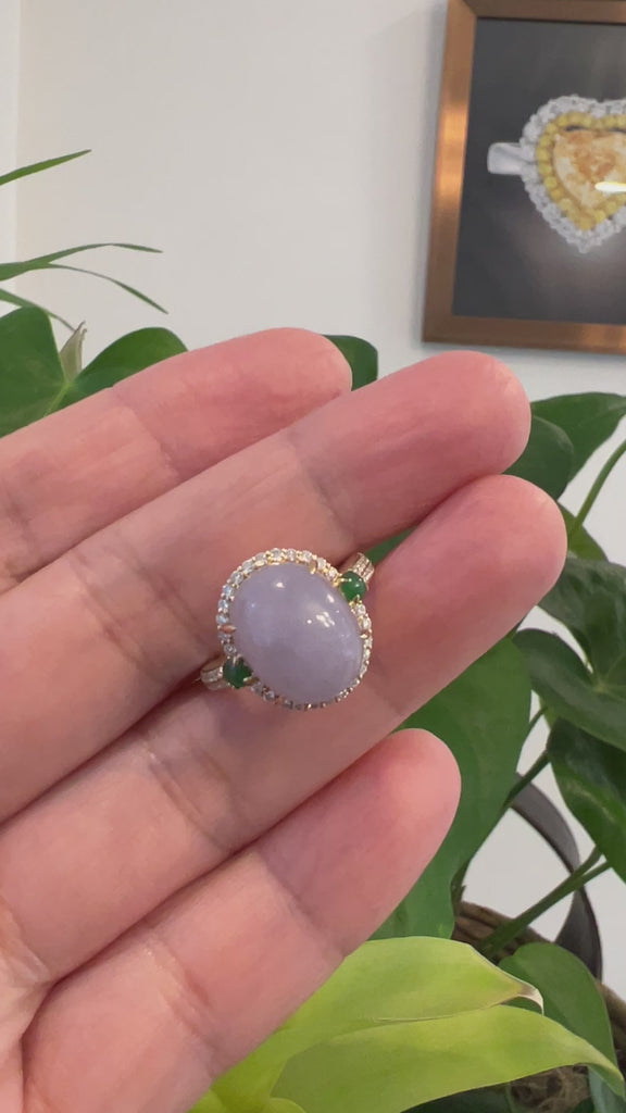 14k Yellow Gold Natural Lavender Oval Jadeite Jade Engagement Ring With Diamonds