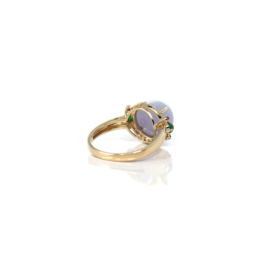 14k Yellow Gold Natural Rich Lavender Oval Jadeite Jade Engagement Ring With Diamonds