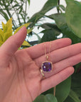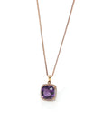 18K Rose Gold AA Royal Amethyst Cushion Cut Pendant Necklace With Diamonds