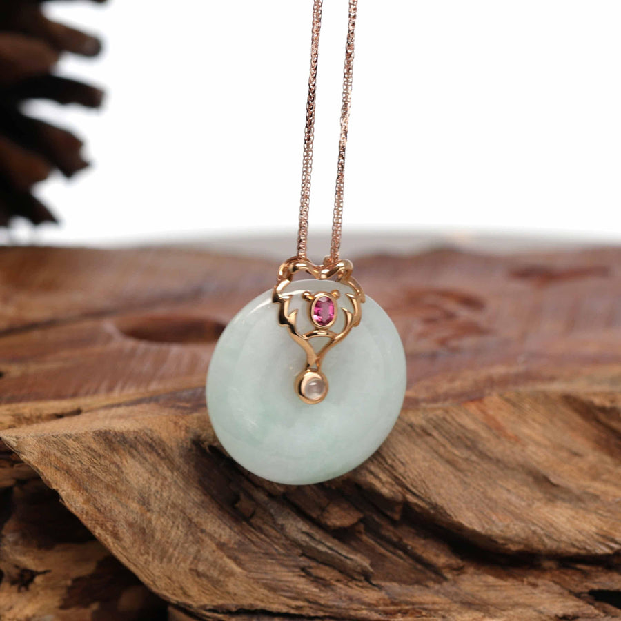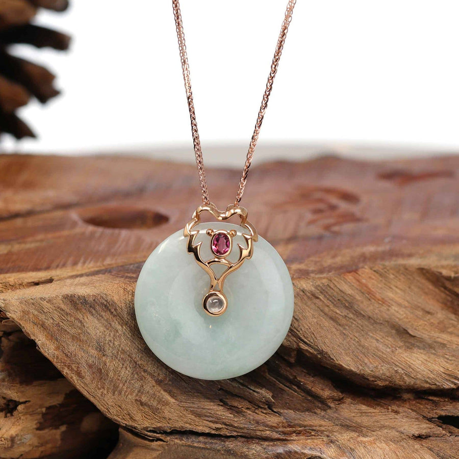 18k Rose Gold Genuine Burmese Jadeite Constellation (Aries) Necklace Pendant with Tourmaline