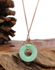Baikalla Apple Green "Ping An Kou" (Good Luck Button) Genuine Burmese Jadeite Pendant W/ 18k Rose Gold Bail W/ Diamonds and Ruby