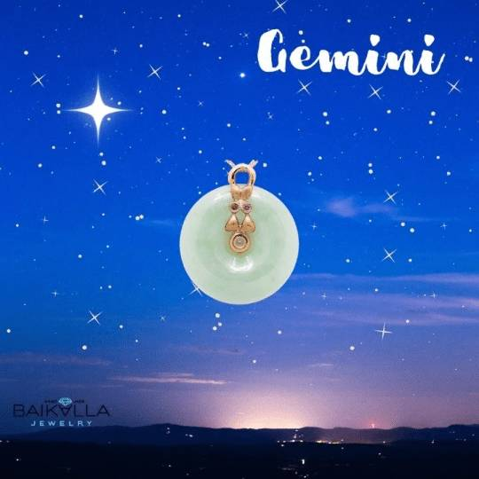 18k Rose Gold Genuine Jadeite Constellation (Gemini) Necklace Pendant with Ruby